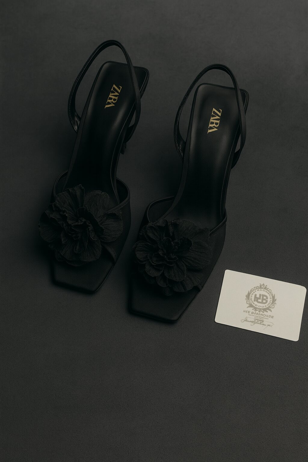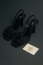 Step into timeless sophistication with these black Zara slingback heels adorned with delicate floral embellishments. The square toe and sleek stiletto silhouette create a perfect balance of power and femininity. Ideal for evening wear, parties, or any occasion.