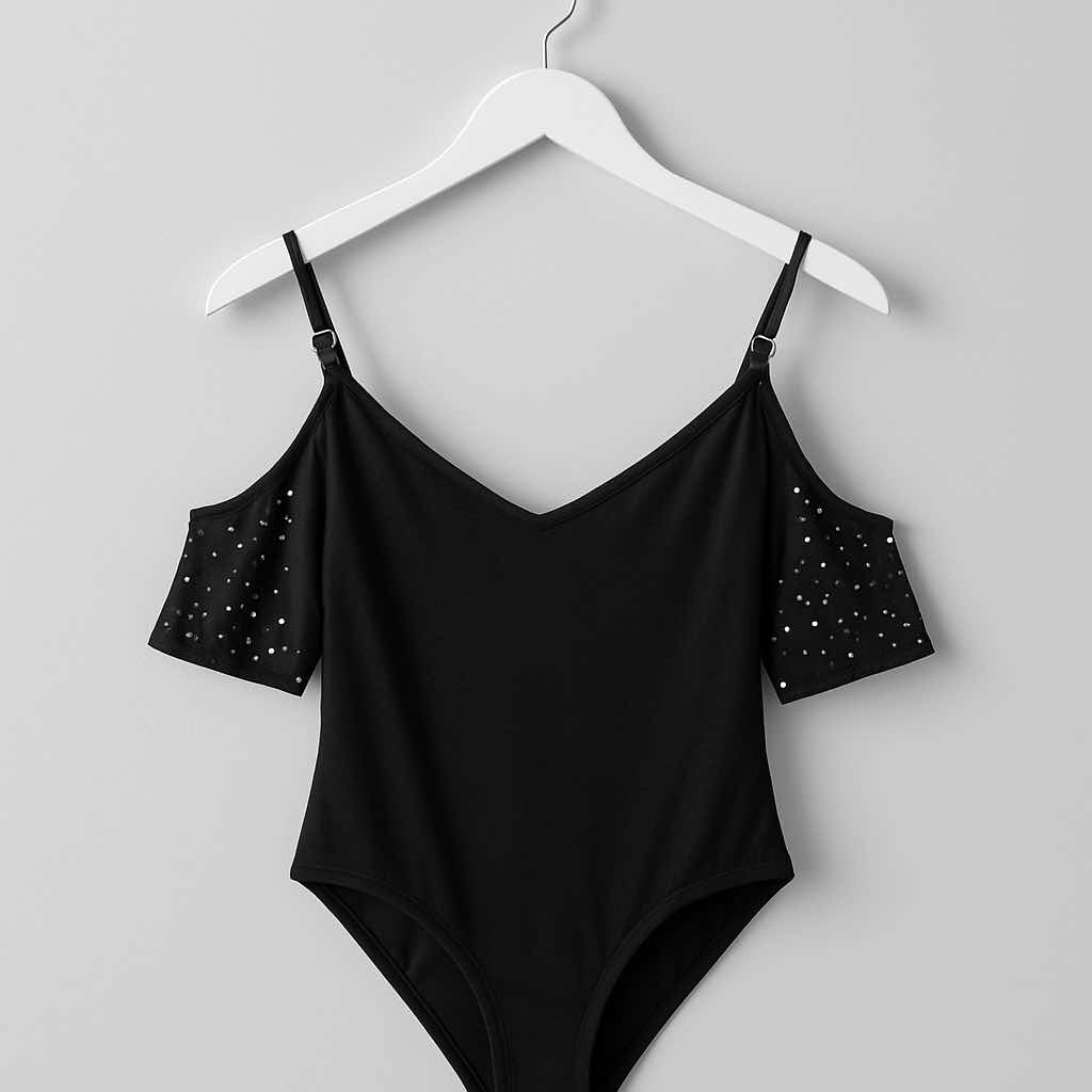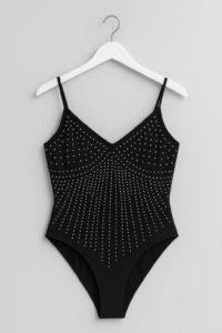 Command attention with this black studded crop top, designed for ultimate glam and edge. Crafted with a sleek body-hugging fit, it features dazzling stud embellishments arranged in an eye-catching geometric pattern that sparkles under the light. The thin straps and cropped cut make it perfect for night outs, concerts, or party looks. Pair it with high-waisted jeans, leather pants, or skirts to create a chic, confident, and unforgettable outfit. A must-have statement piece from Royal Luxury Boutique.