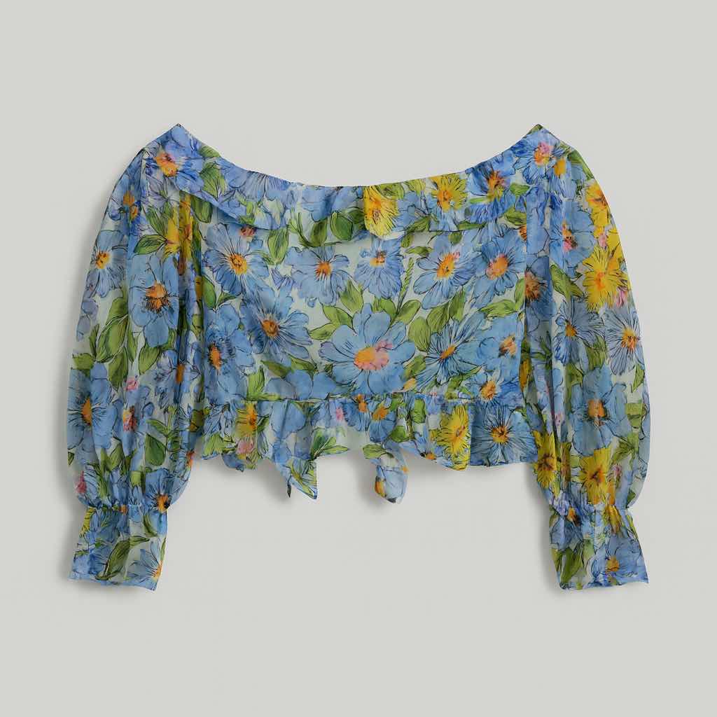 Be the first to review “Blue Floral Sheer Tie-Front Blouse” Cancel reply