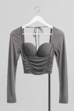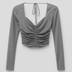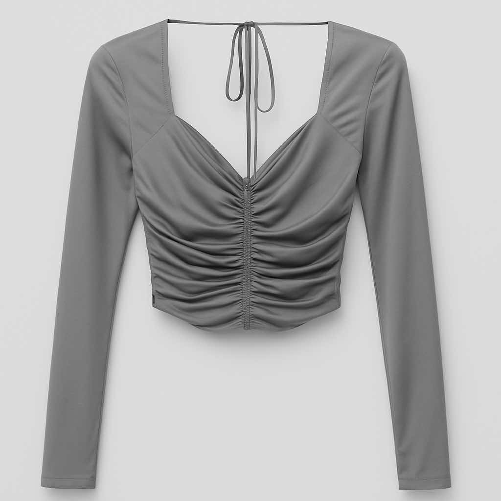 Be the first to review “Sleek Ruched Long Sleeve Crop Top with Square Neckline”