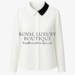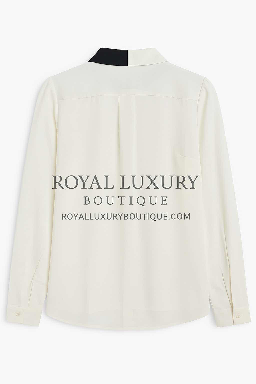 Elevate your wardrobe with this timeless white blouse from Royal Luxury Boutique, featuring a bold black collar for a refined contrast. Crafted for effortless elegance, this piece blends minimalism with a touch of sophistication — perfect for office days or upscale outings.